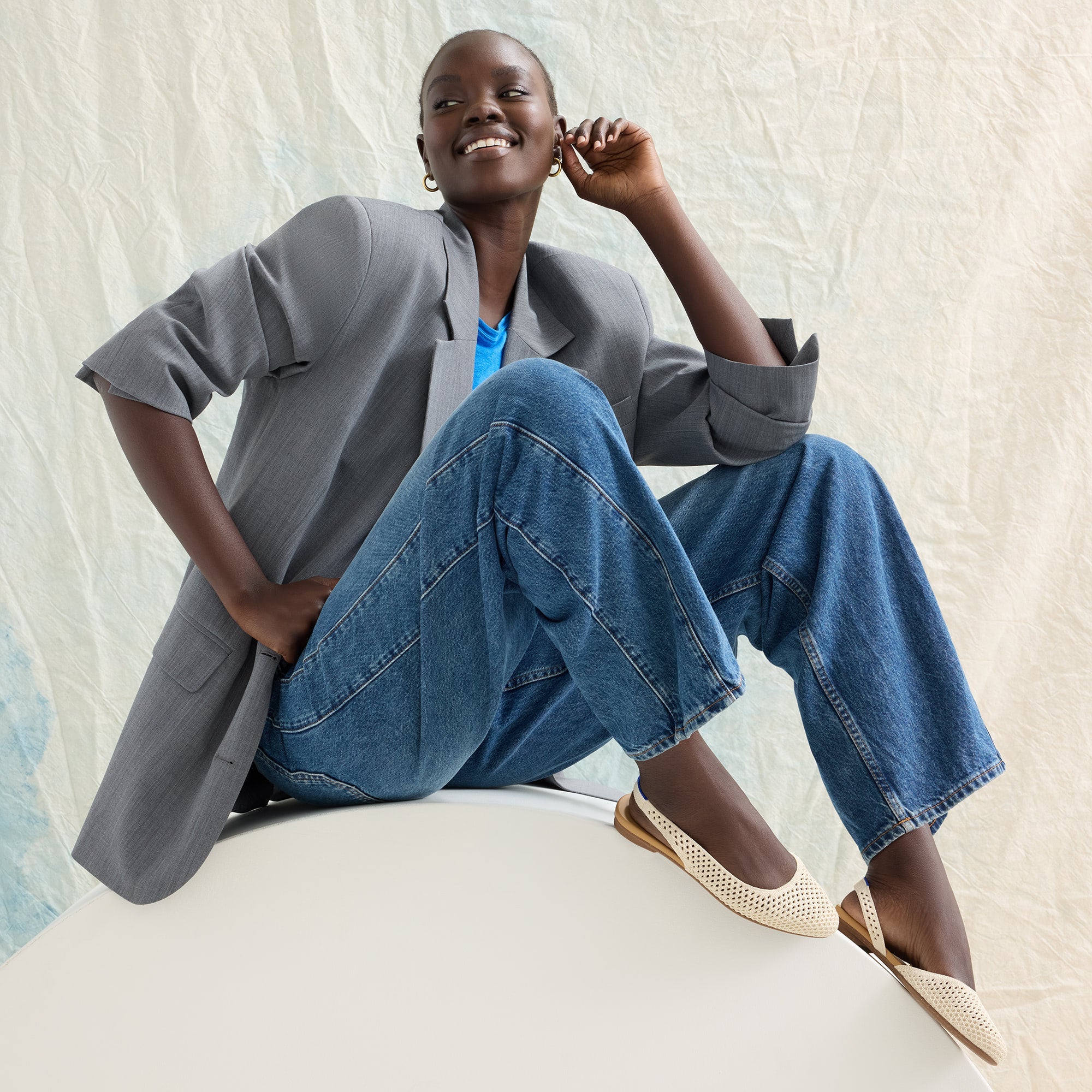 Open-back, stretchy sling strap-comfy, but make it chic.