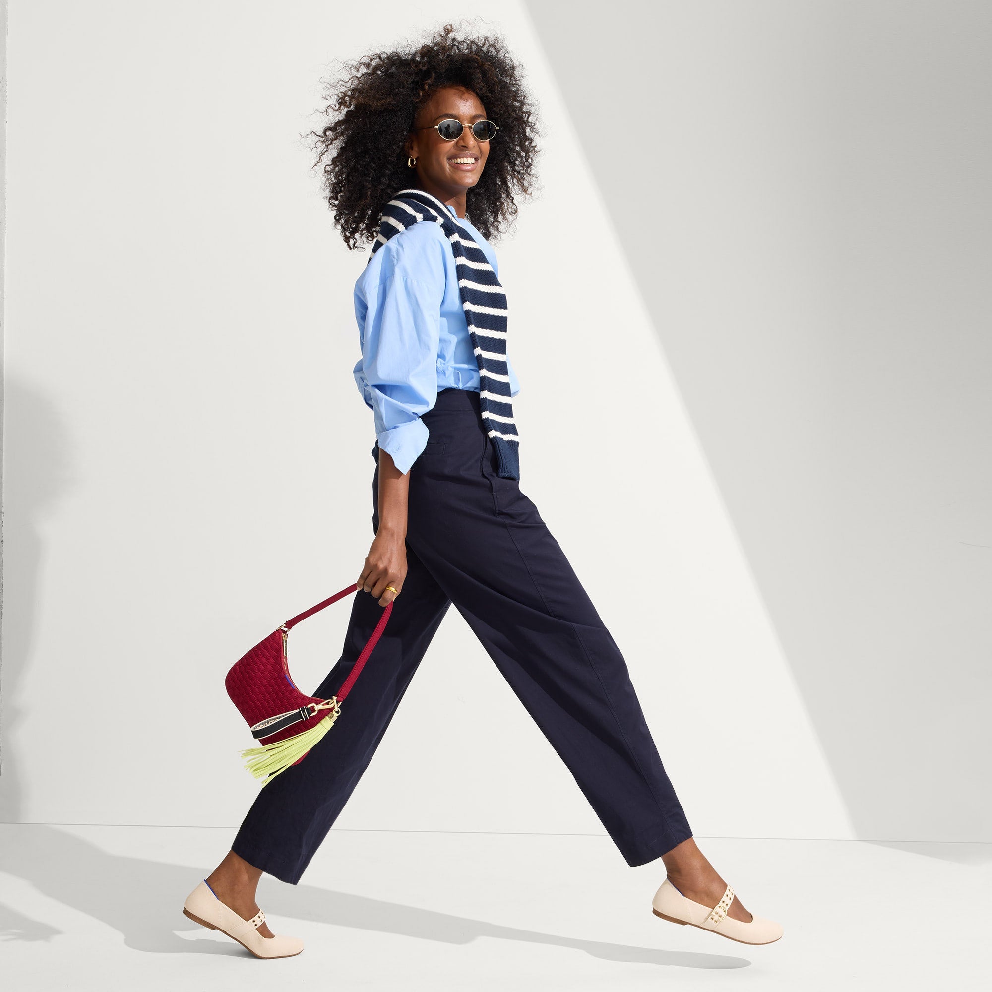 Adjustable signature straps with gold metal eyelets for style with a bit of edge.