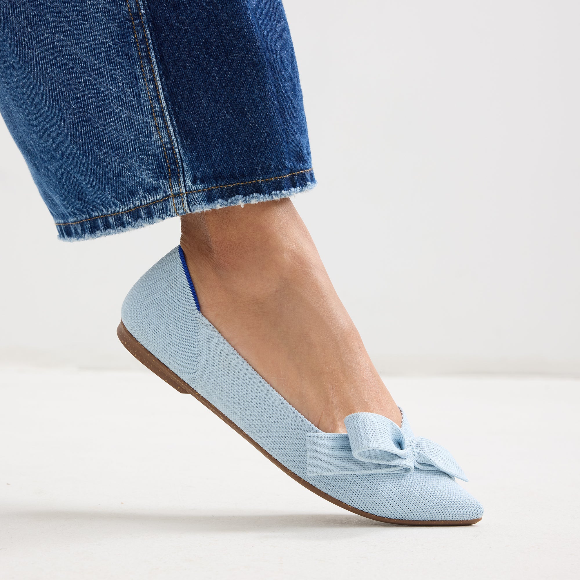 Premium pastel blue knit upper with a chic bow-an instant upgrade for any outfit.