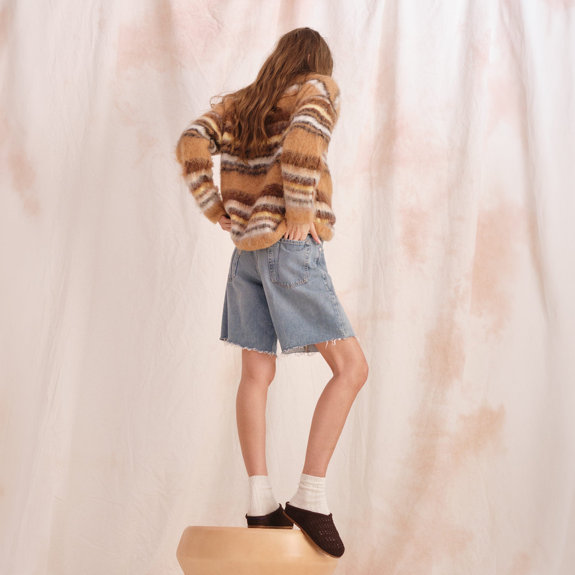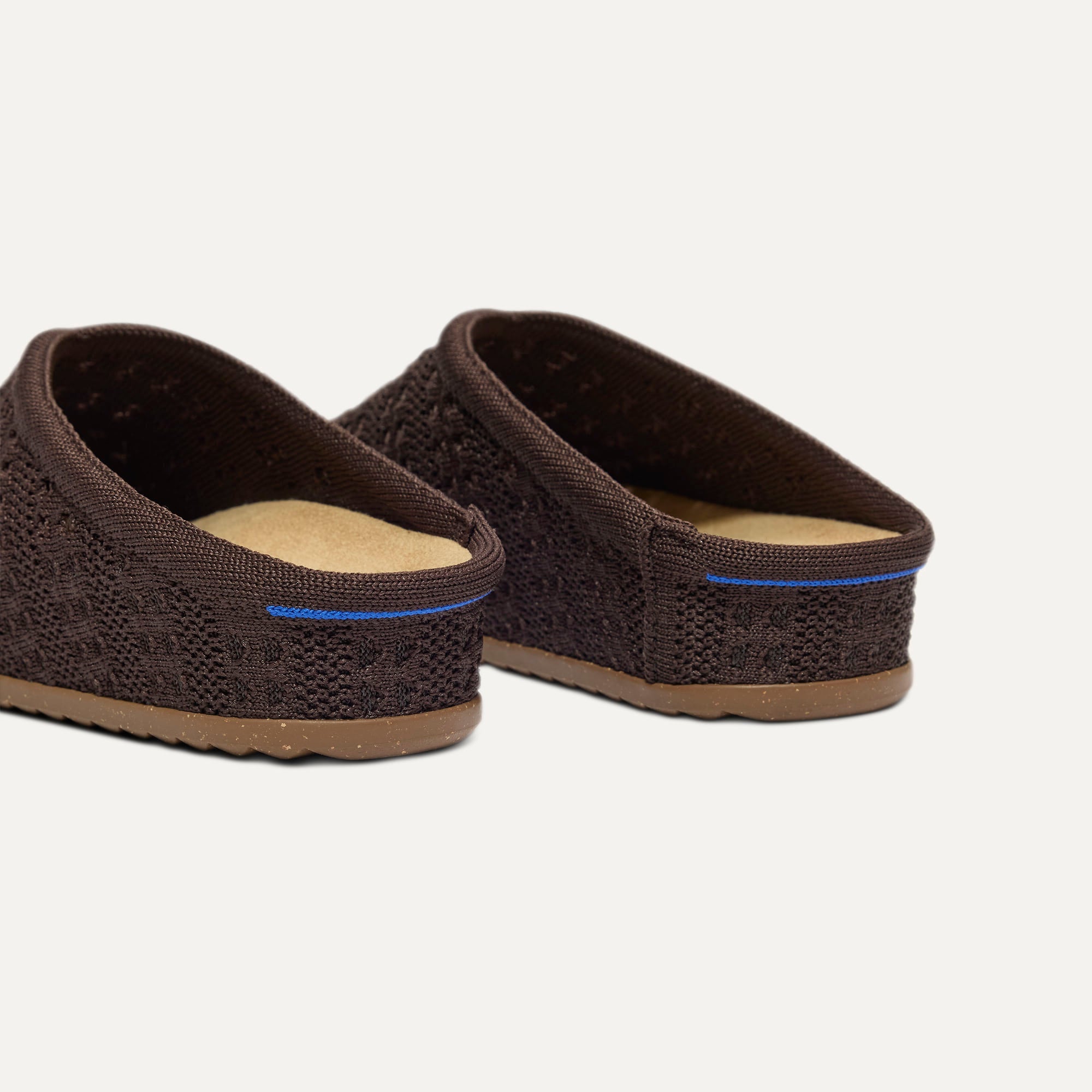 Airy, crochet-knit upper in chocolate brown.