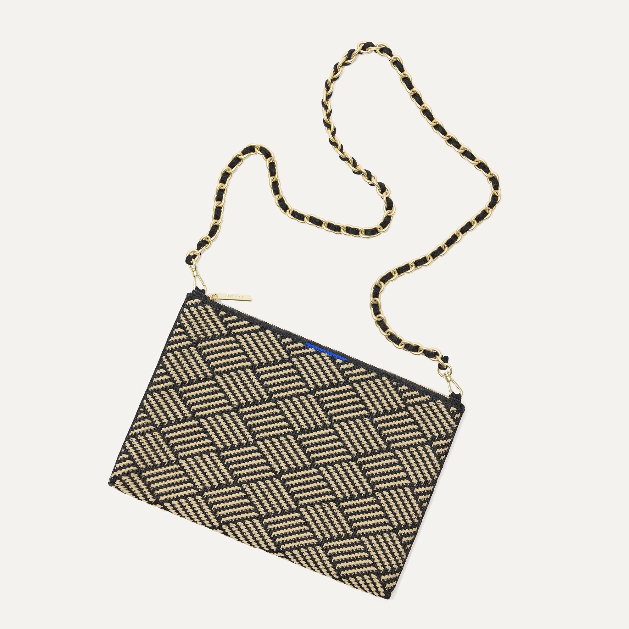 Lightweight, versatile style in black and tan herringbone zig-zag pattern.