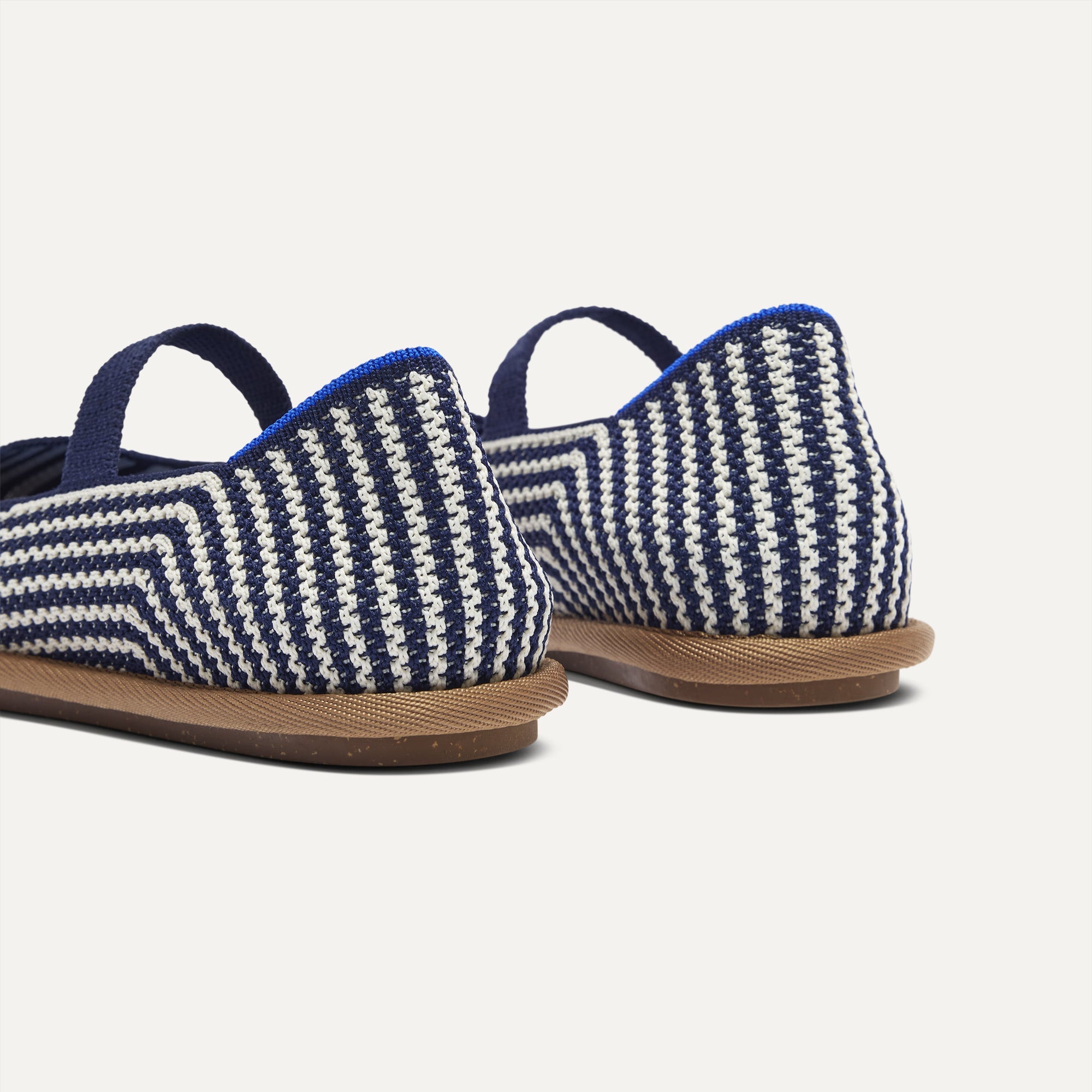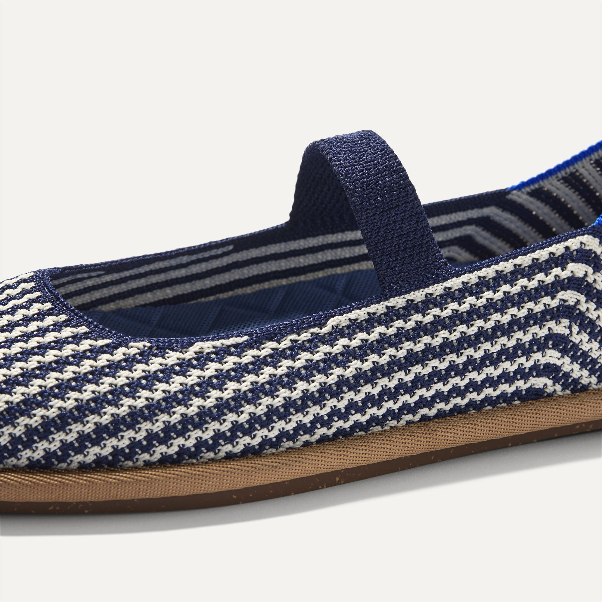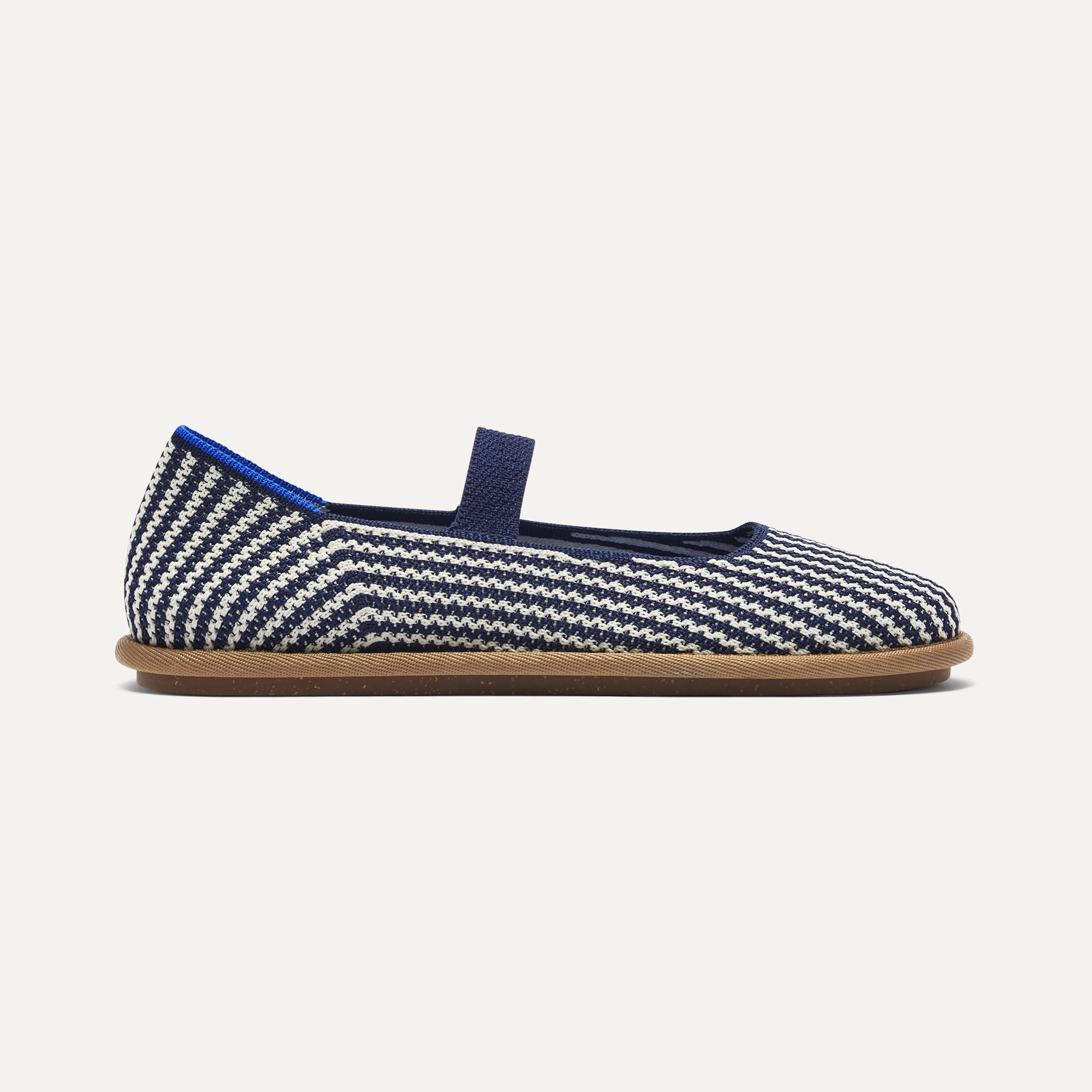 Luxe, lightweight navy and ivory striped upper with a navy elastic strap.