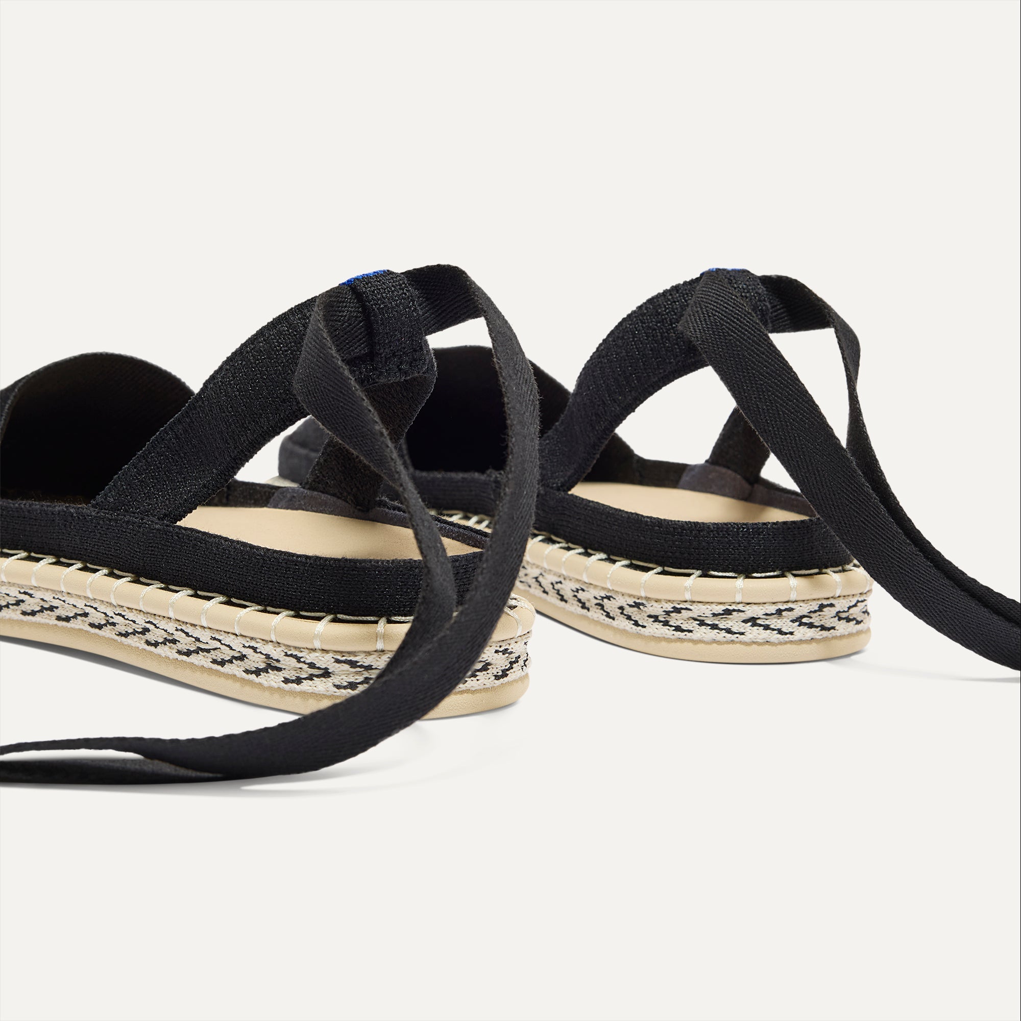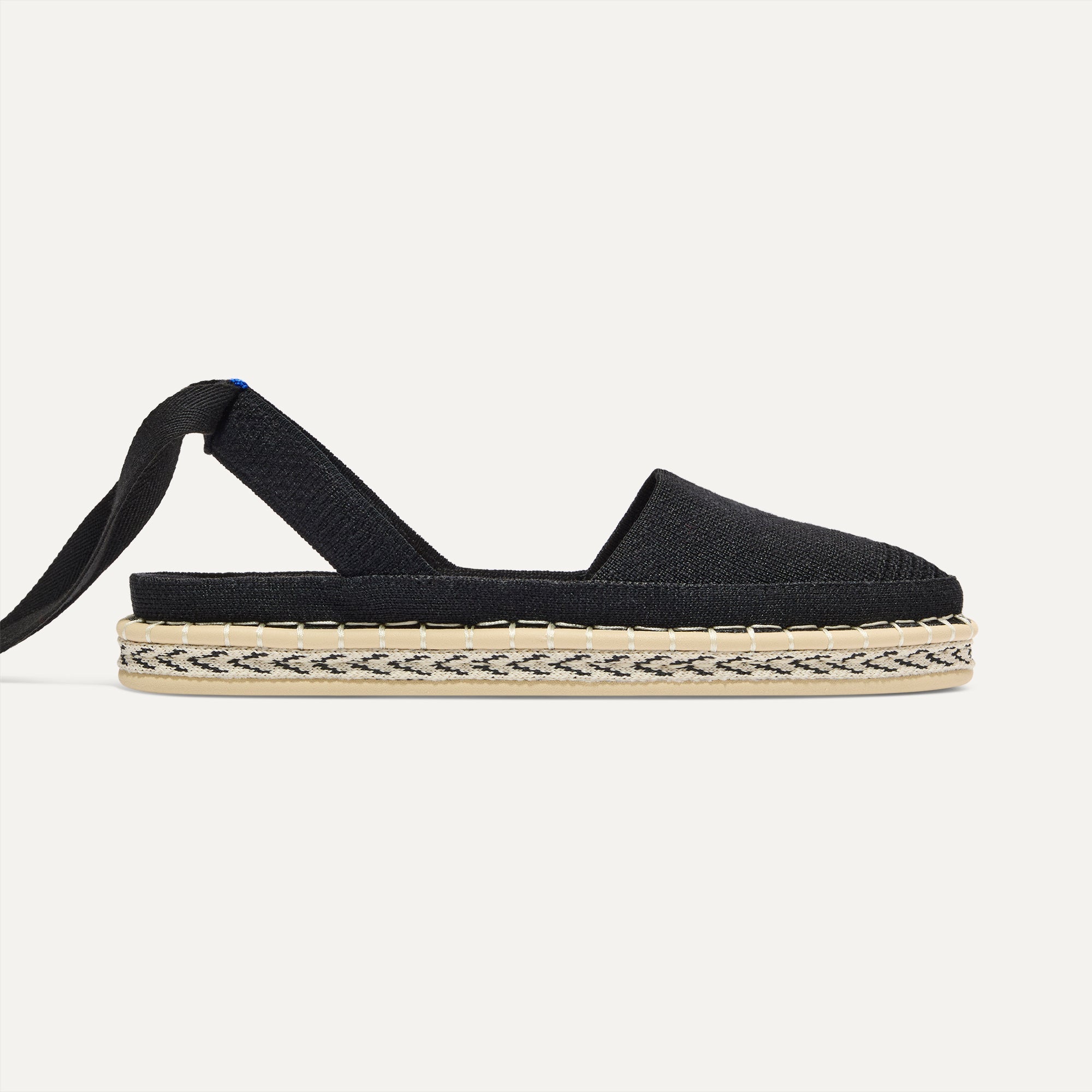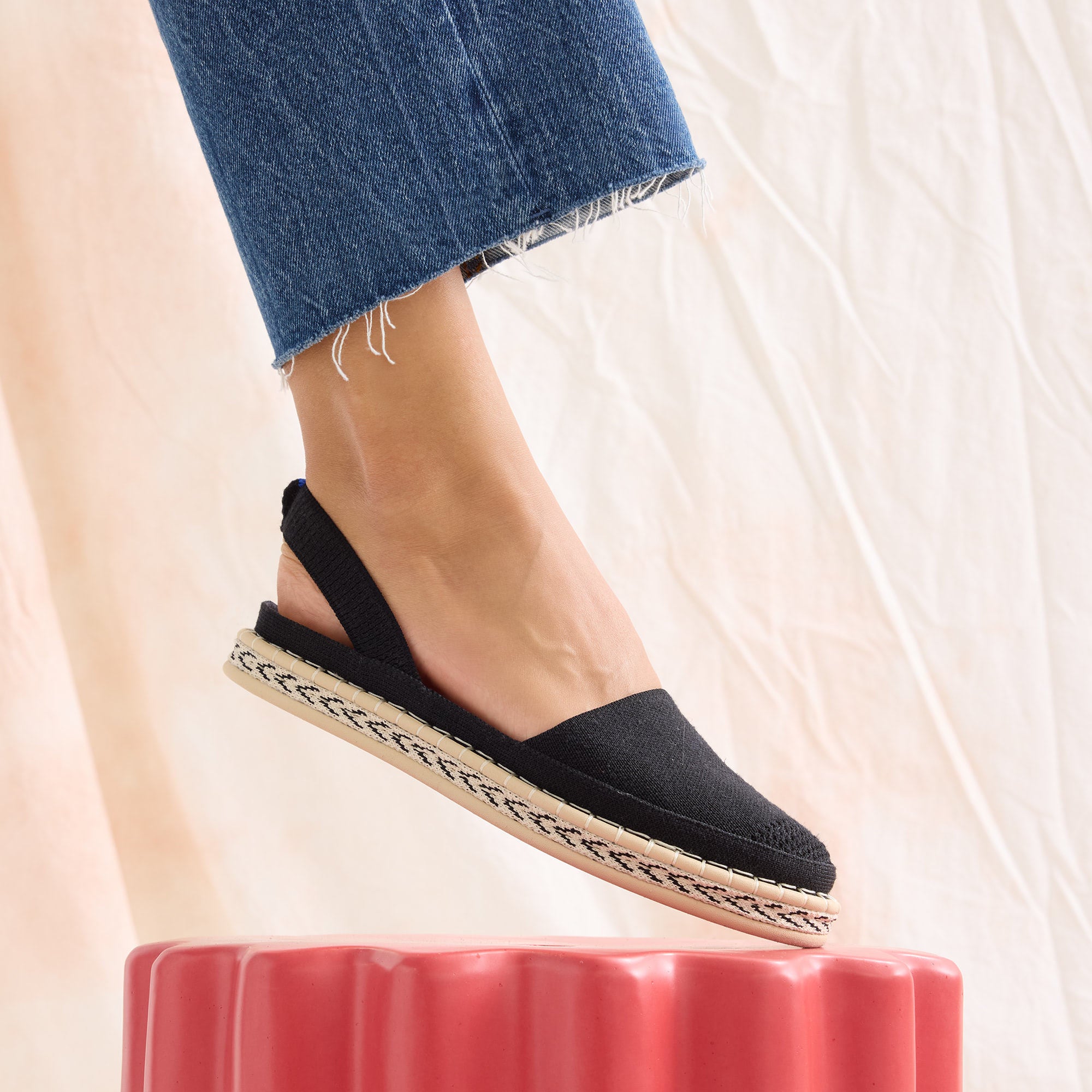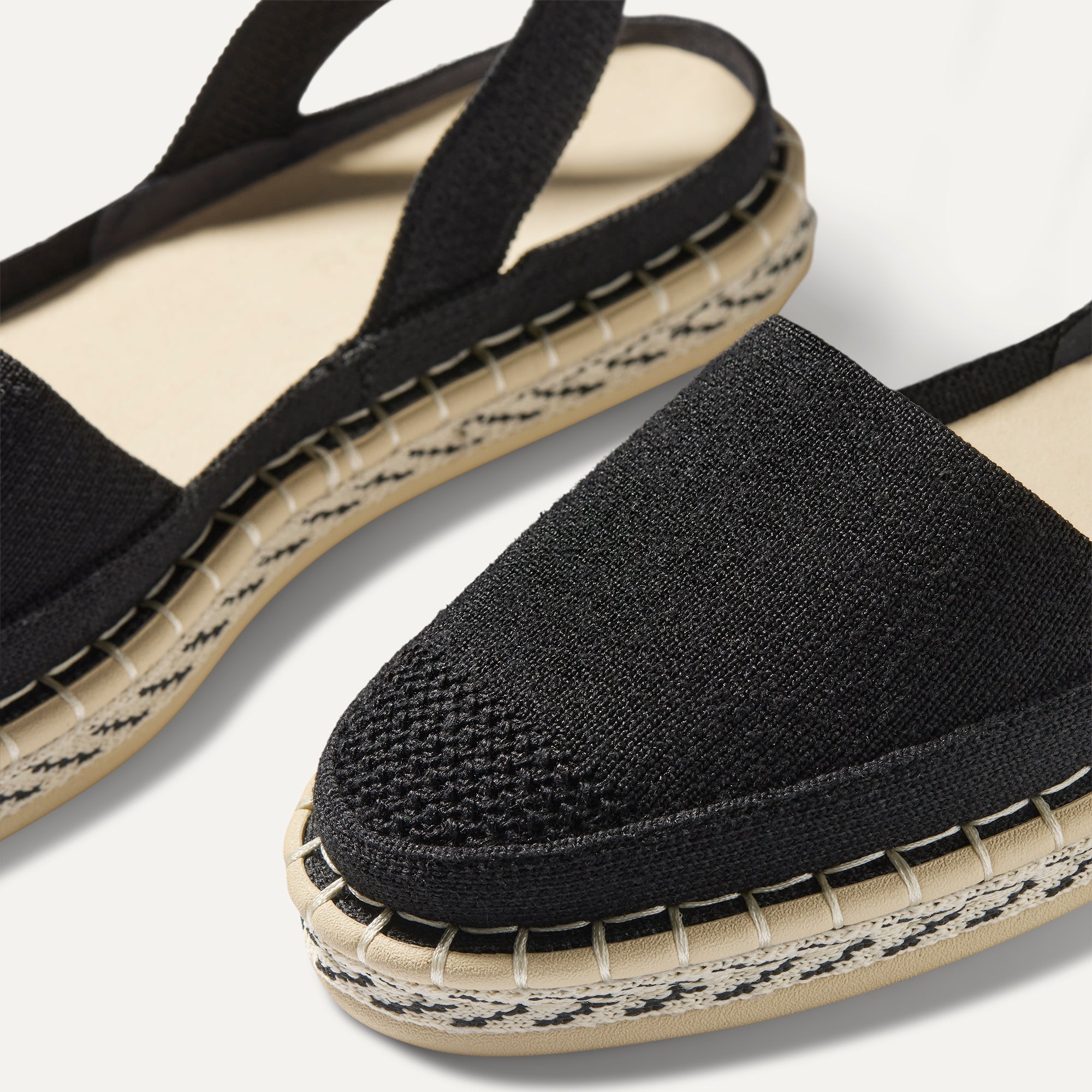 Flexible knit upper in black-made from a blend of hemp and recycled plastic bottles.