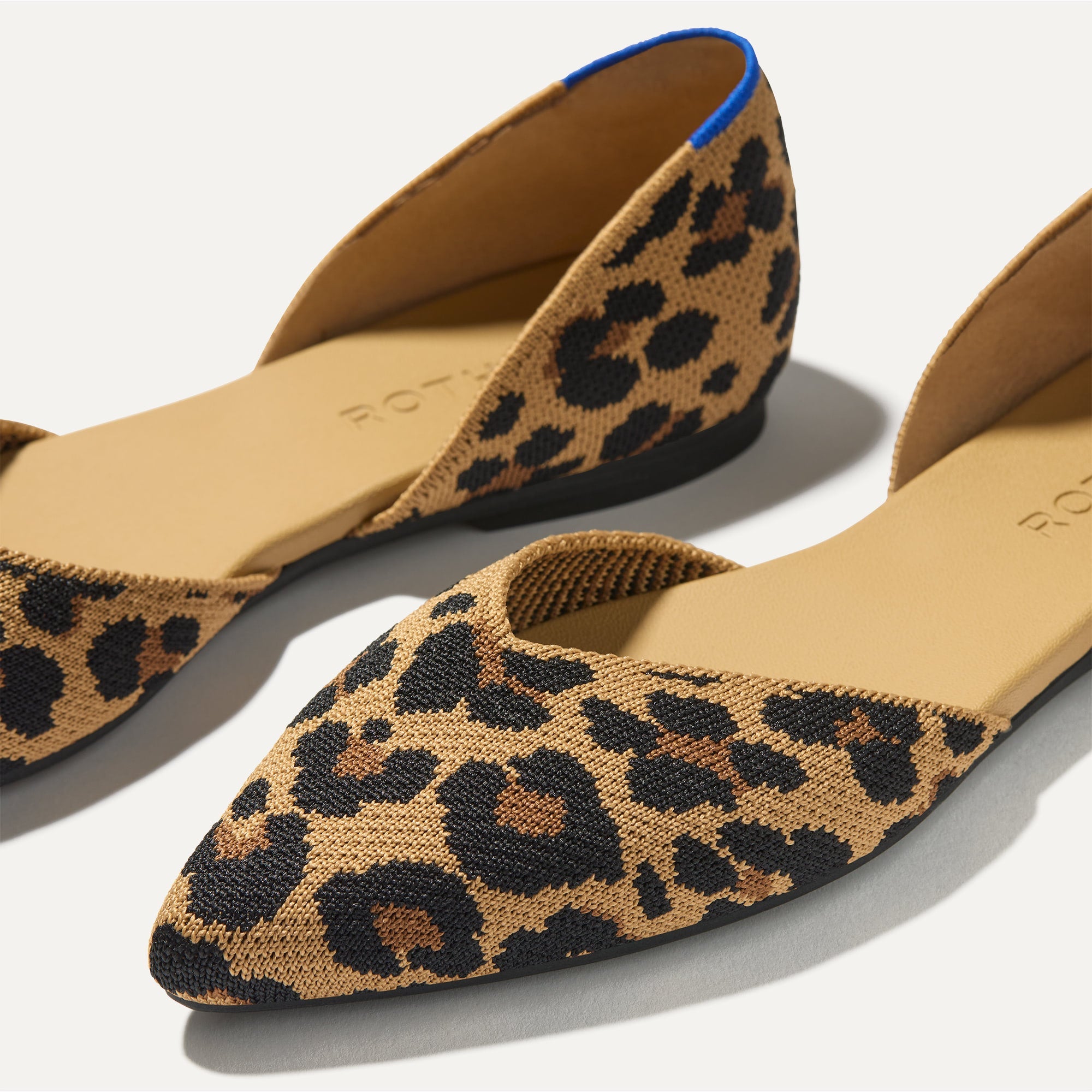 Premium cheetah print knit upper, with our signature pointed toe.