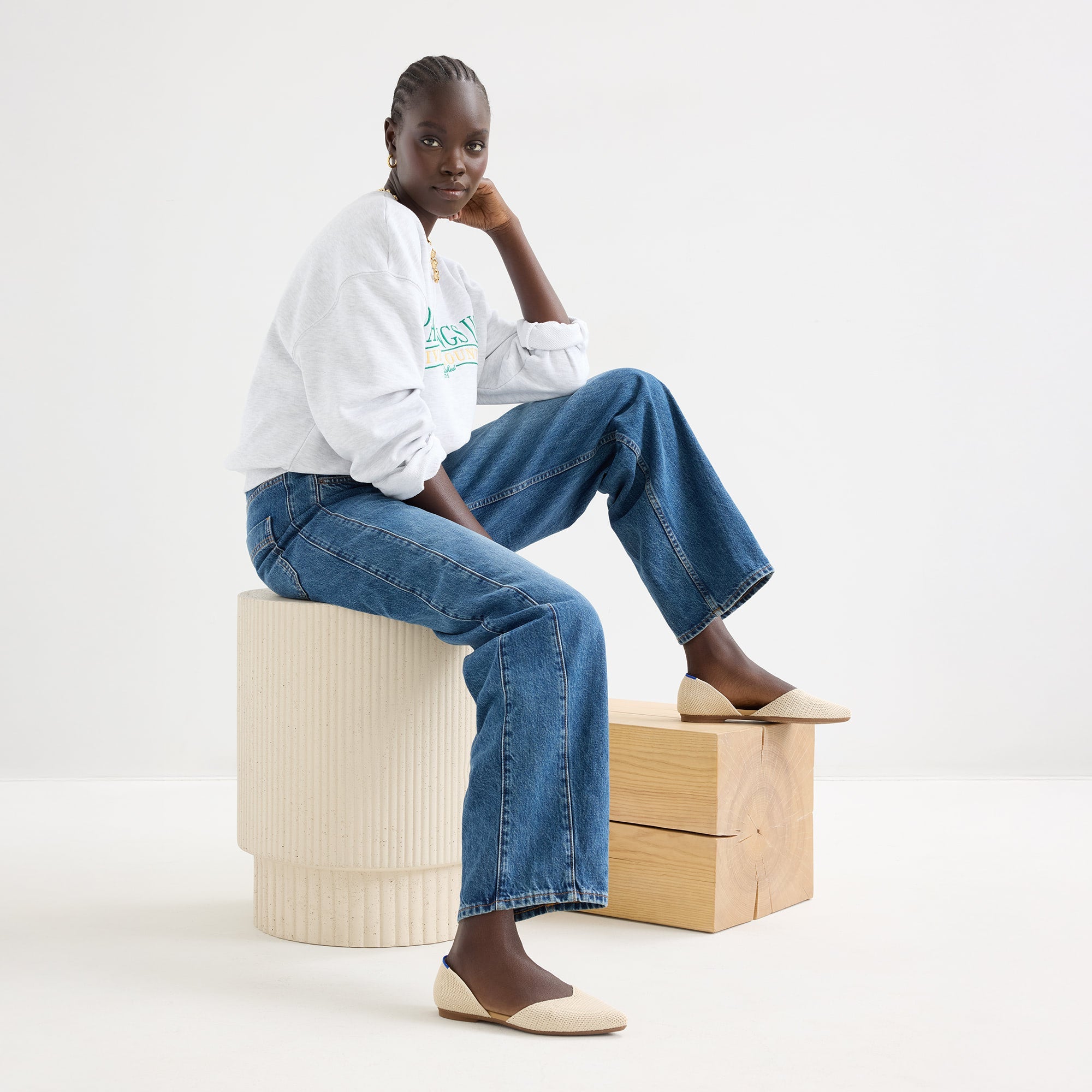 Raffia-inspired ivory knit upper, with our signature pointed toe.