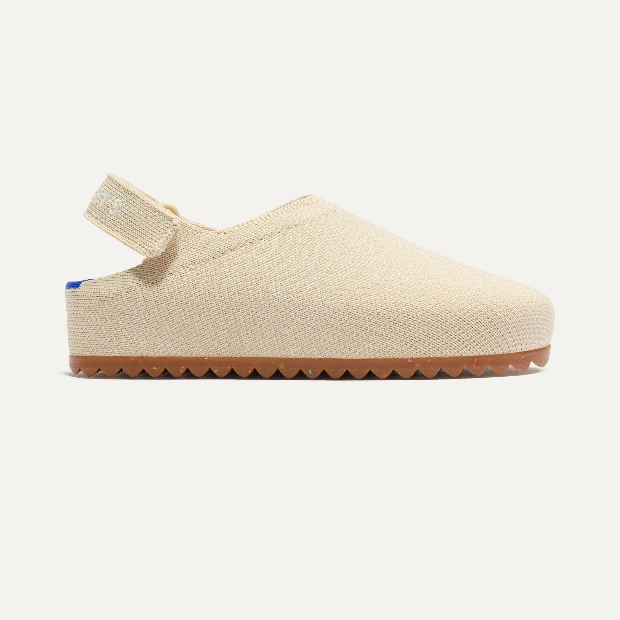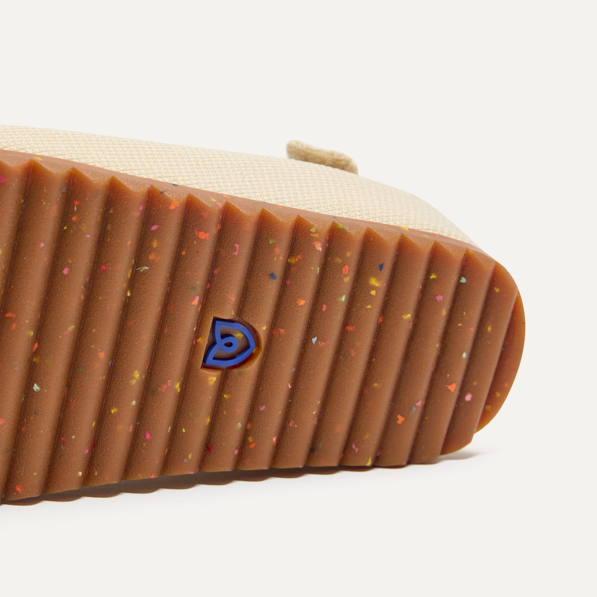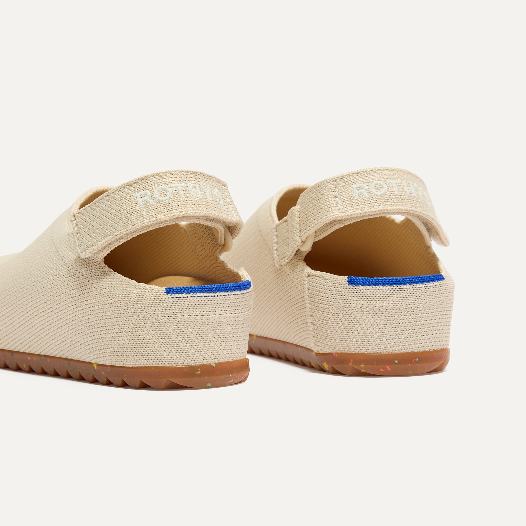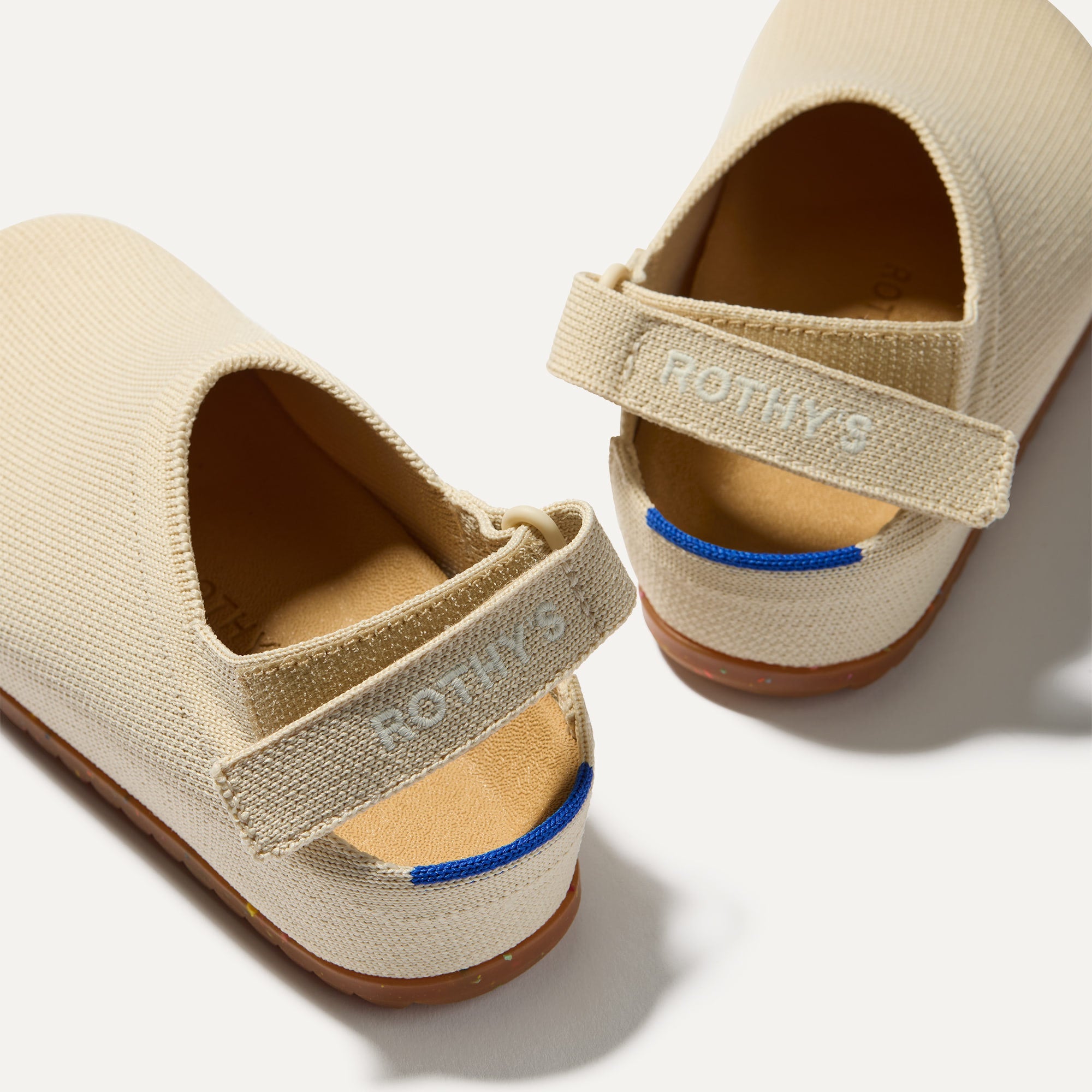 Features a comfortable, adjustable hook & loop heelstrap in ivory to keep their little feet secure.