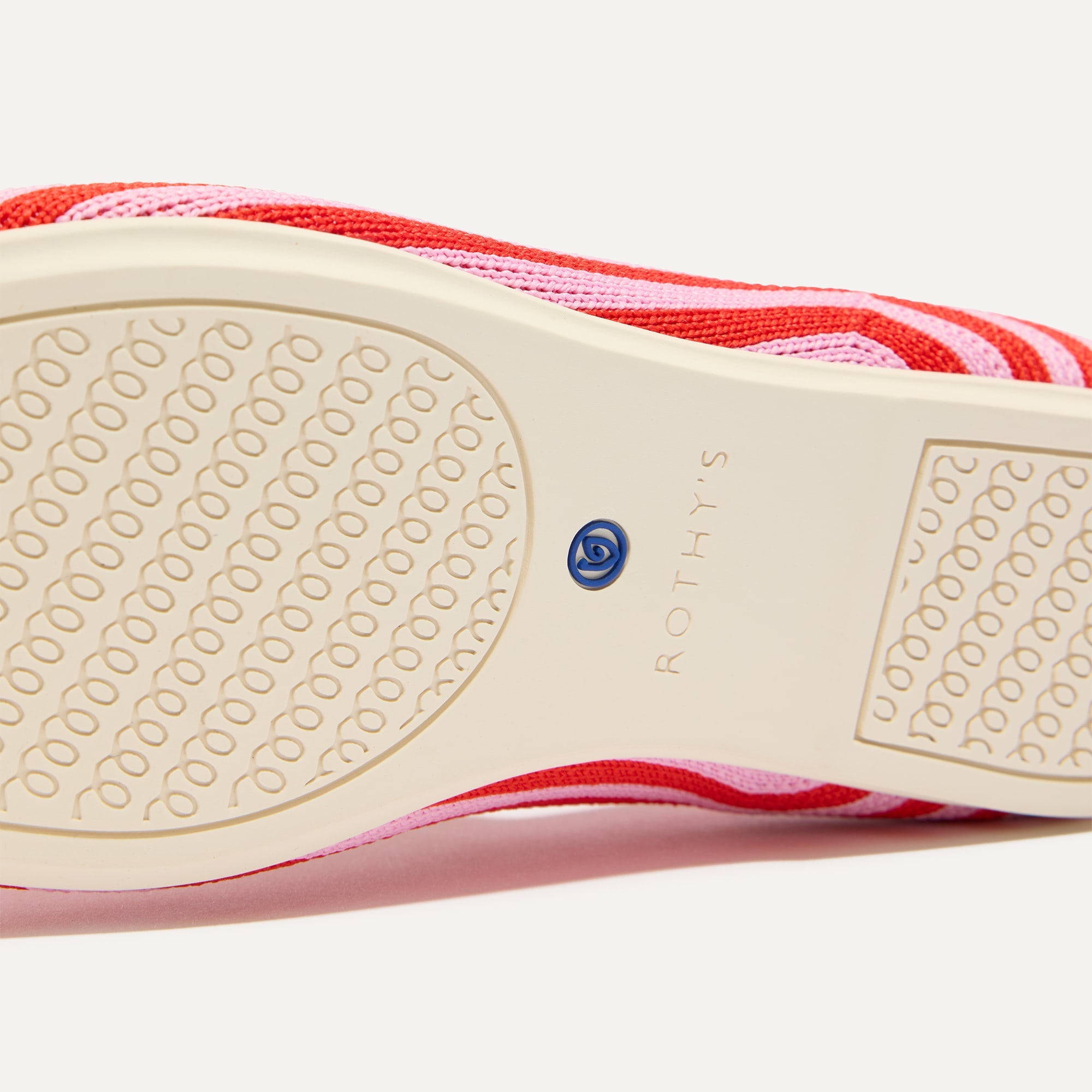 Soft, flexible upper in bright red and pink stripes.