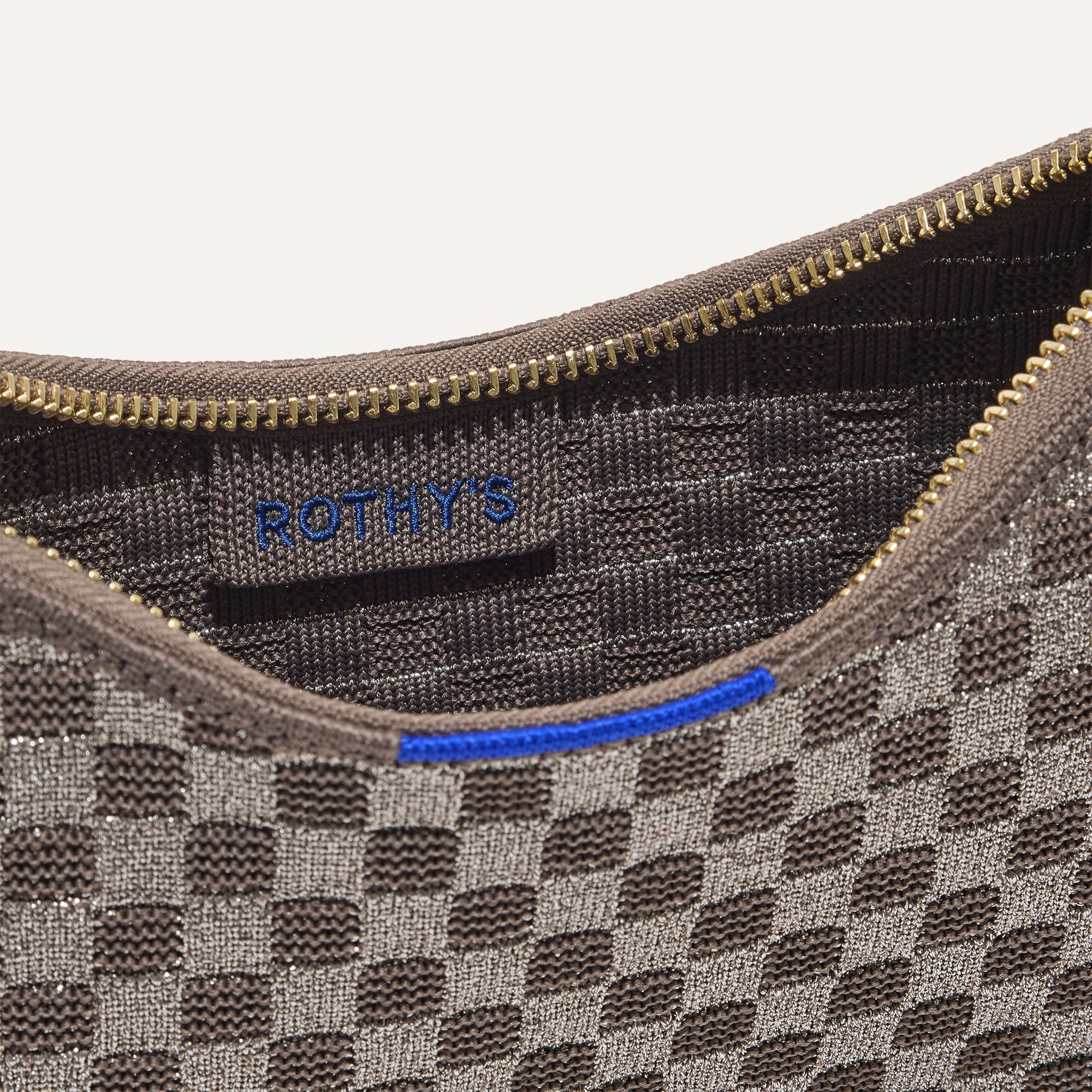 Sleek design in a shimmery metallic taupe basketweave pattern.