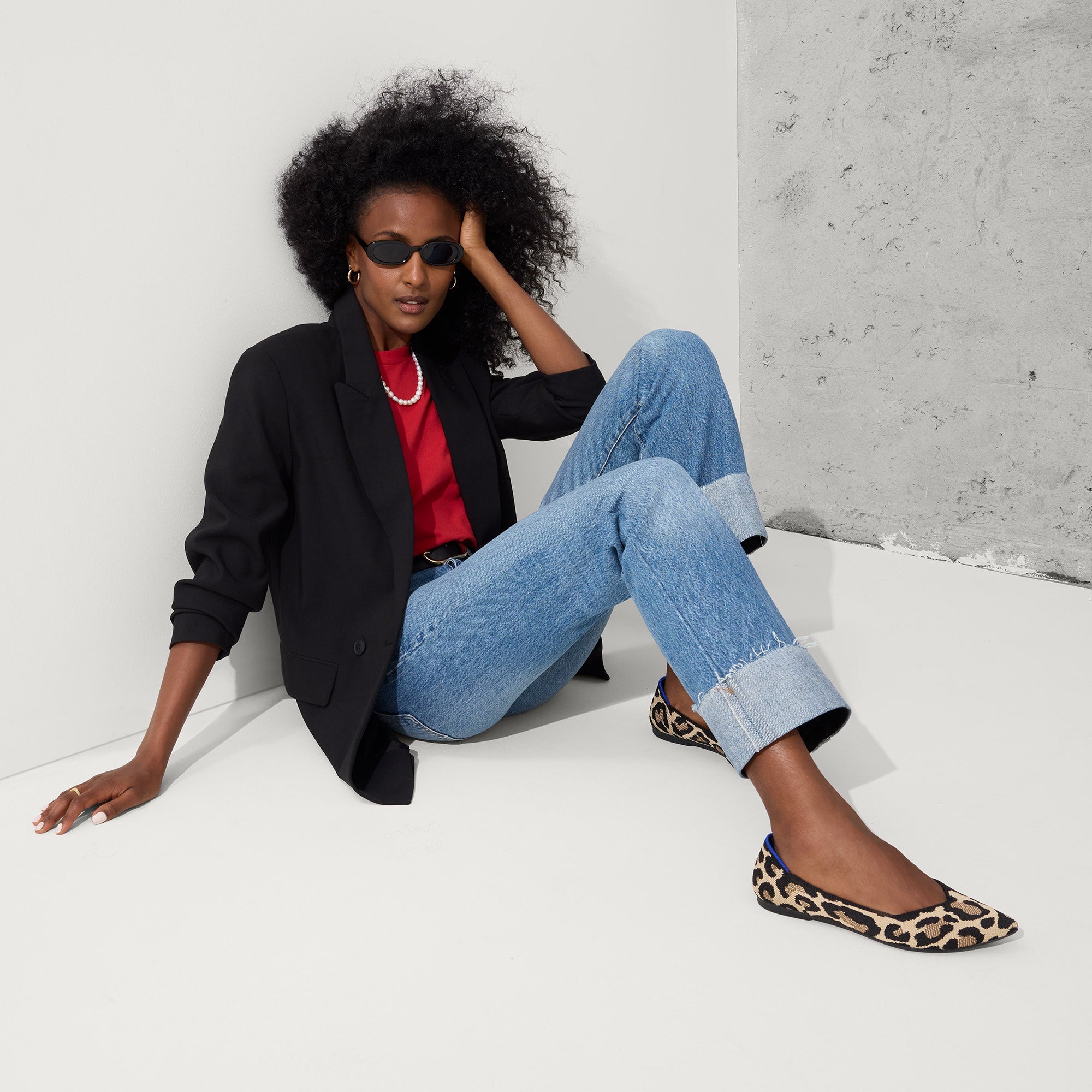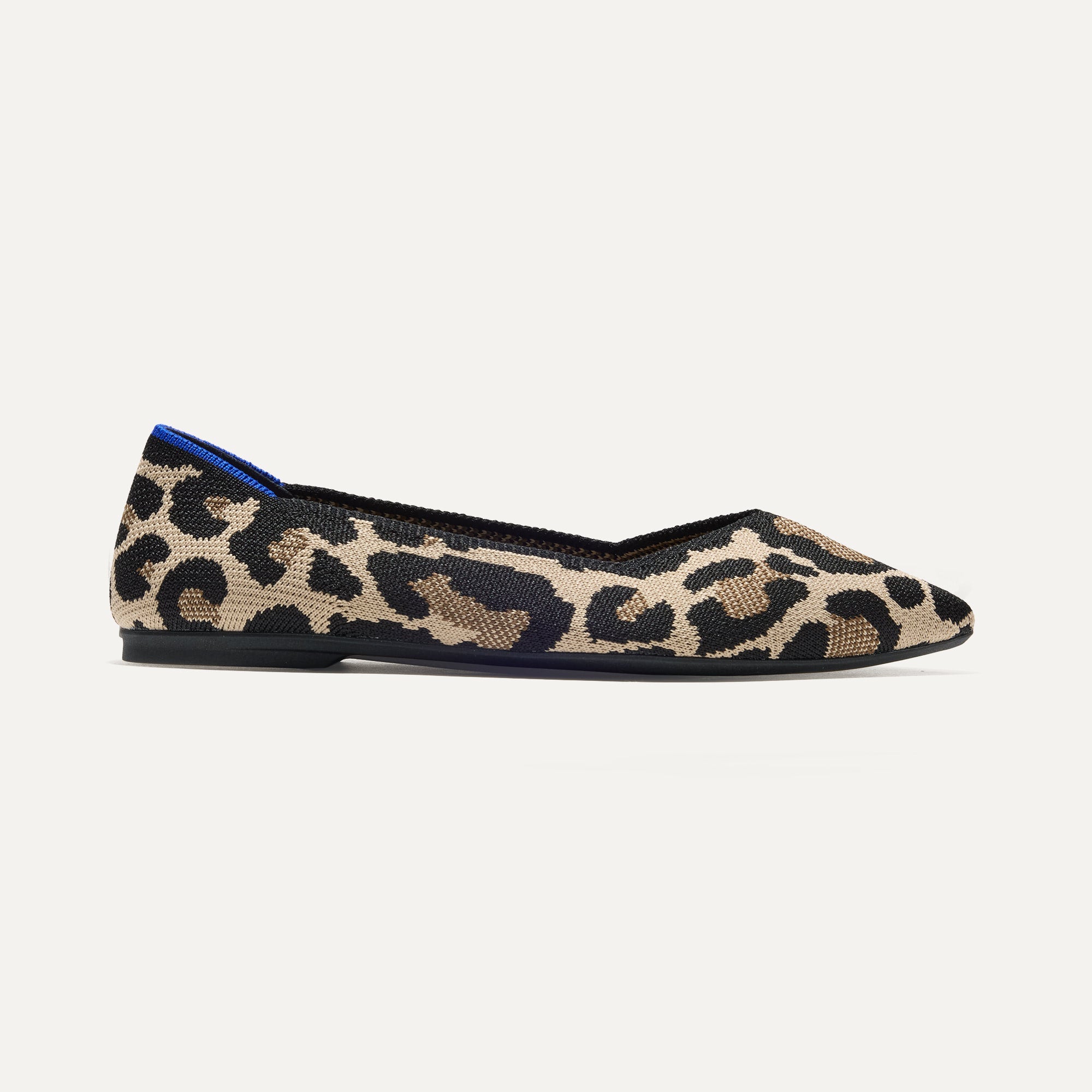 Premium knit upper in a black and cream leopard print with a smooth, refined shape.