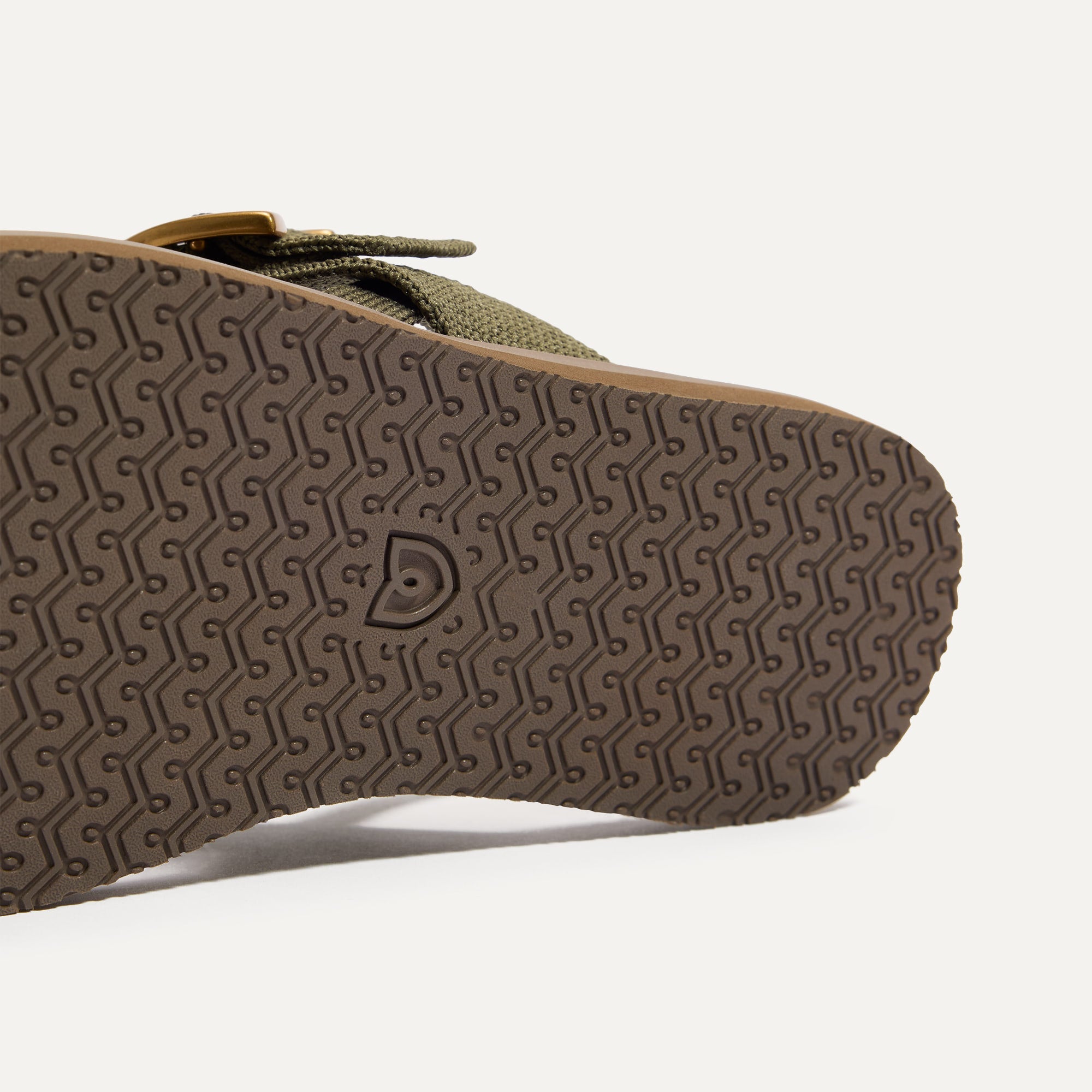 Softly knit upper in olive green features a t-strap style for a super sleek look.